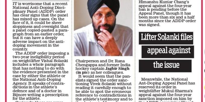 It is worrisome that a recent National Anti-Doping Disciplinary Panel (ADDP) order has clear signs that the panel has mixed up cases. On the face of it, it could be sheer sloppiness and oversight that a panel copied-pasted a paragraph from an earlier order, but it can have a deeply adverse impact on the anti-doping movement in the country.