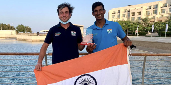 Photo: Coach Alexandr Denisiuc and Vishnu Saravanan (Courtesy: SailCoach on Twitter).